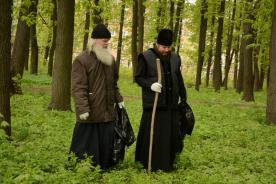 Прихожане и паломники навели порядок в роще, которую посадила братия обители в конце девятнадцатого – начале двадцатого веков. Жители города выполнили работы по сбору мусора, вырубке поросли, укладке газона, высадке деревьев. Всего работало более ста человек. На всей территории набрали несколько десятков мешков с мусором.