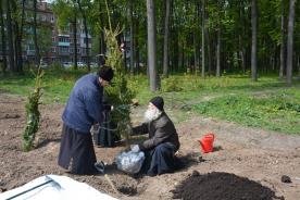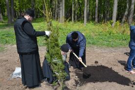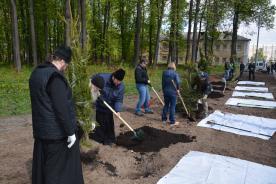 Отец наместник и насельники монастыря очистили парк от мусора и посадили несколько елей на Аллеи Доброты.