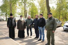 Глава администрации Тулы Евгений Авилов встретил наместника монастыря архимандрита Клавдиана (Ларькова) с братией и принял участие в высадке елей на третьей Аллеи Доброты.