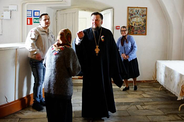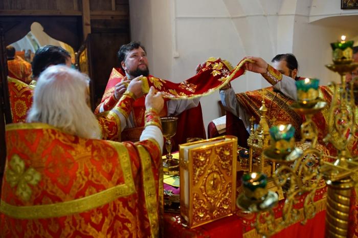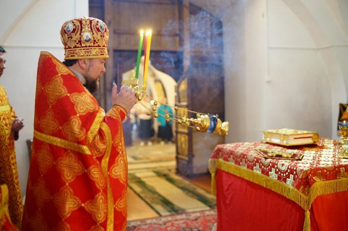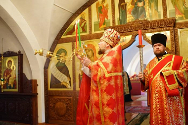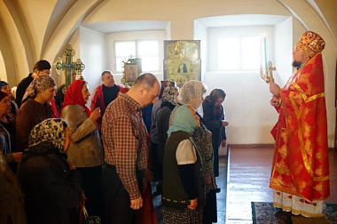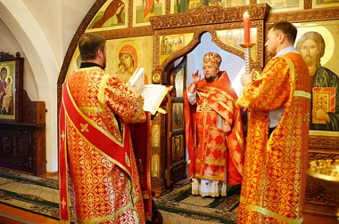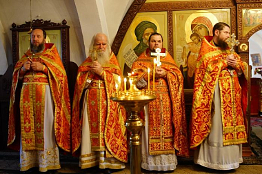 По завершении заупокойной литии насельник обители игумен Алексий поздравил верующих:
