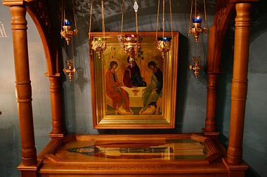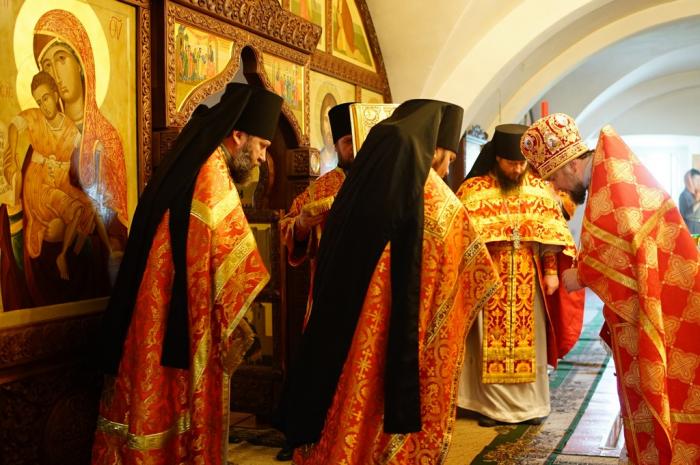 После крестного хода и молитвенного пения отец наместник обратился к верующим с пастырским словом: