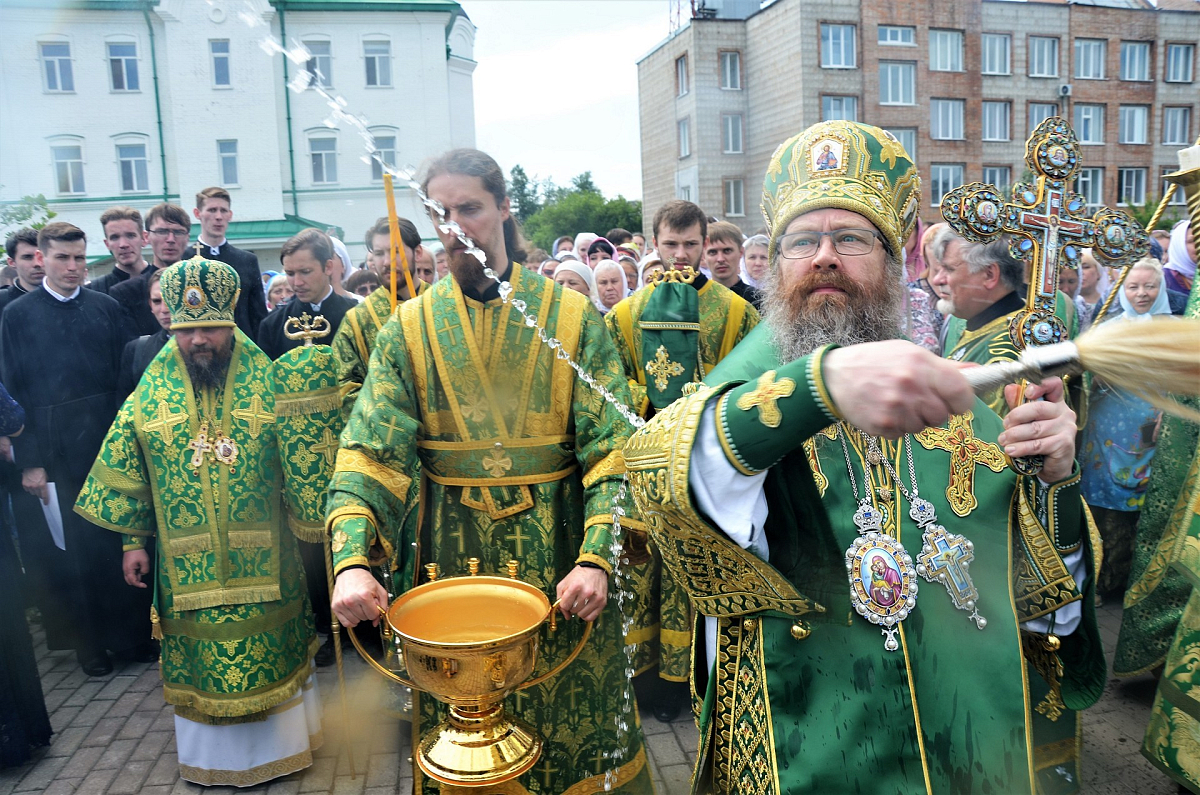 5 июля 2019 года, в день празднования обретения мощей святого праведного Феодора Томского, на паперти Казанского храма Богородице-Алексиевского мужского монастыря г. Томска Божественную литургию под открытым небом возглавили митрополит Томский и Асиновский Ростислав, епископ Мариинский и Юргинский Иннокентий, епископ Колпашевский и Стрежевской Силуан и епископ Северобайкальский и Сосново-Озерский Николай.