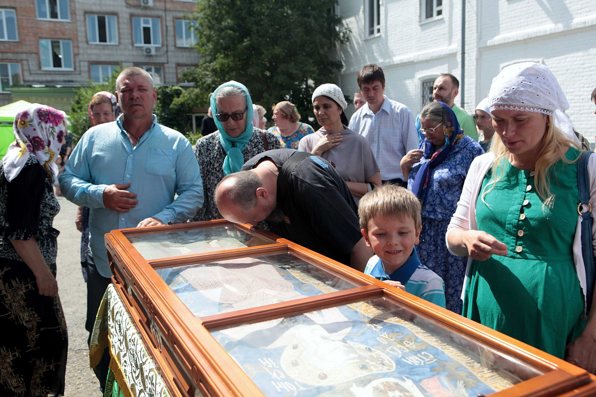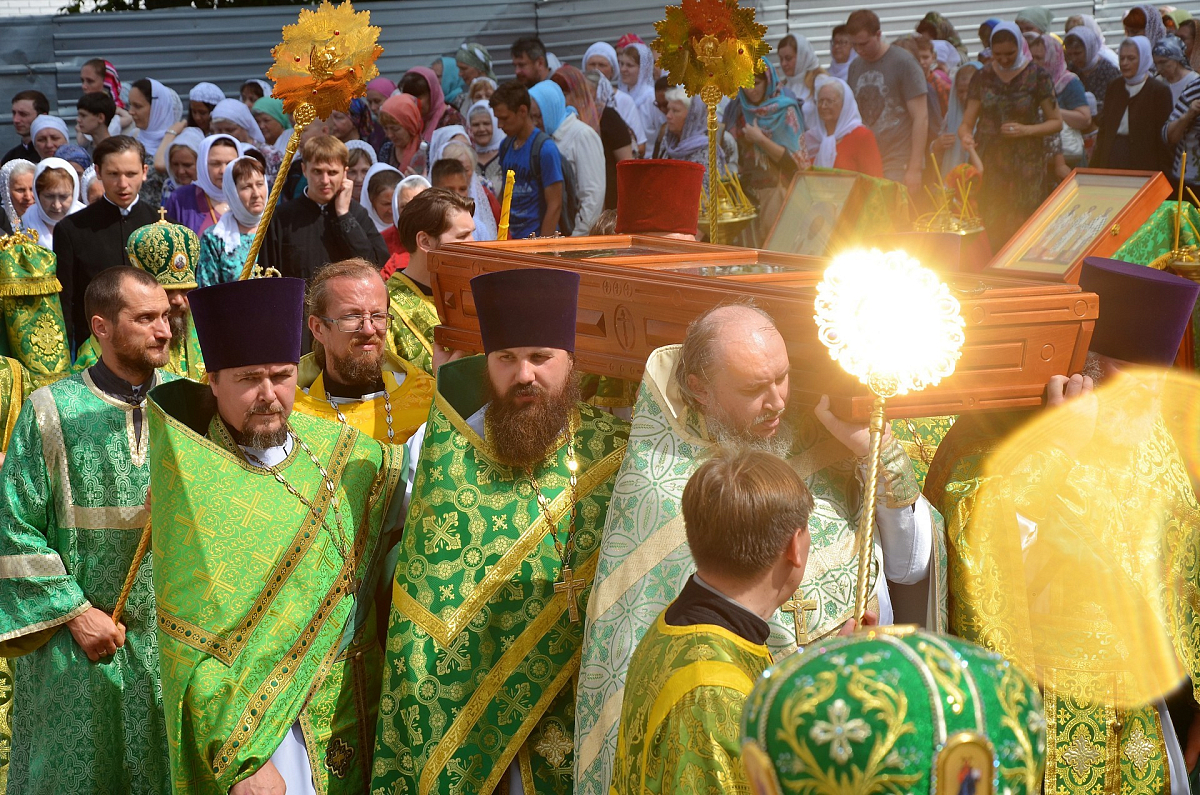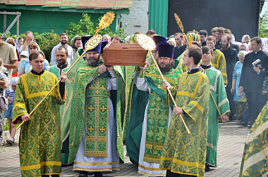 По окончании Литургии был совершен крестный ход с мощами праведного старца Феодора вокруг Казанского храма.