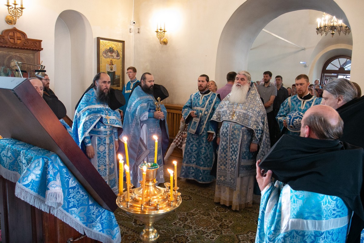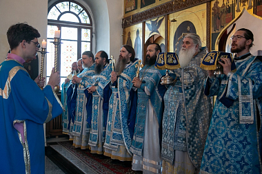 Архимандриту Иосифу сослужили игумен монастыря иеромонах Кирилл (Умрилов) с братией обители в священном сане.