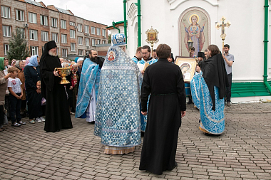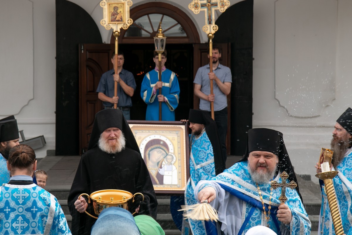 По окончании Литургии были совершены славление перед чтимым Казанским образом Пресвятой Богородице и крестный ход.