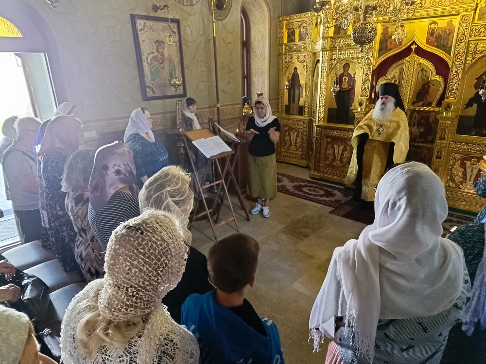 Особенностью богослужения стало активное участие глухих на Литургии, члены общины переводили части службы. На запричастном стихе благочинный Богородице-Рождественского монастыря игумен Гавриил (Крускоп) обратился к верующим с проповедью. Члены общины поздравили отца Гавриила с днем тезоименитства и поблагодарили за теплый прием.