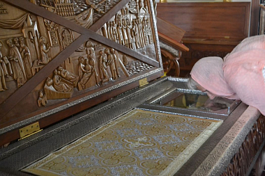 Ушаковцы причастились святых Христовых Таин. По окончании Литургии ребята поклонились мощам святого. Далее их ждет путь в Арзамас и Дивеево.