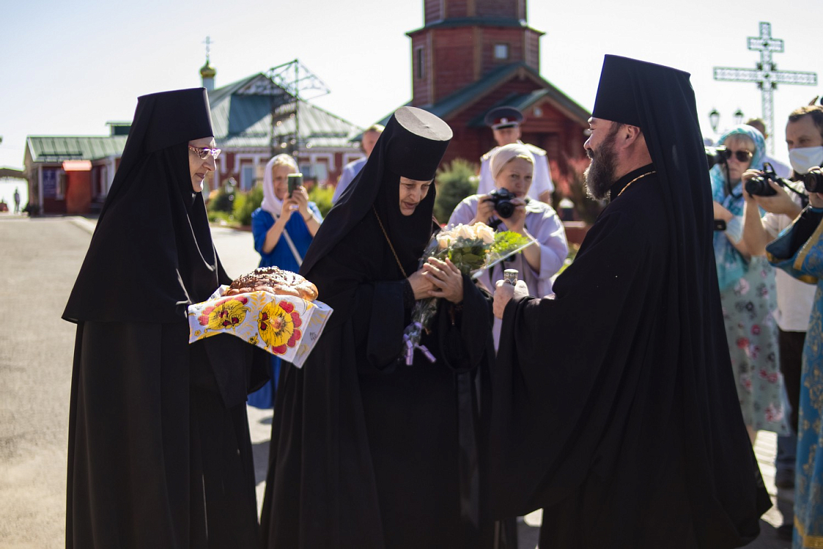 У входа в храм Преосвященного владыку встречали игумения Иова (Иванова) с сестрами обители.