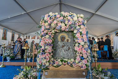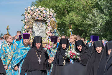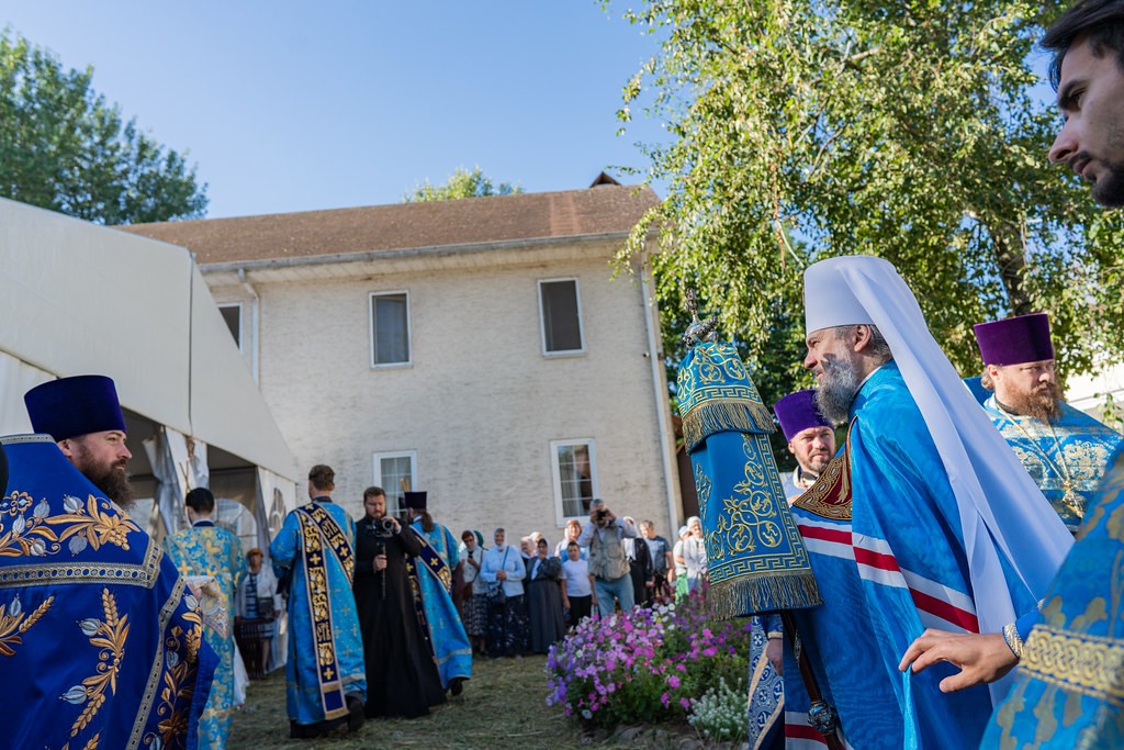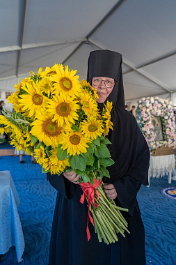 После Литургии вокруг стен обители прошел крестный ход, который возглавил митрополит Амвросий. Вокруг монастыря пронесли чтимую Смоленскую икону Божией Матери, впереди шли монахини с букетами цветов, дети несли хоругви.
