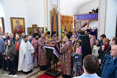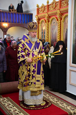 Затем в своем святительском слове, обращенном к прихожанам и паломникам старинной обители, Его Высокопреосвященство рассказал о значении подвига прославляемой в этот святой: