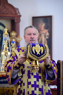 Проповедь перед Причастием произнес игумен Глеб (Шматов), настоятель Бело-Бережской Иоанно-Предтеченской пустыни.