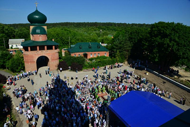 В этот день на площади перед восстанавливаемым Казанским собором обители была совершена Божественная литургия при многочисленном стечении паломников из Брянска, Курска, Железногорска и других городов Брянской и соседних областей.