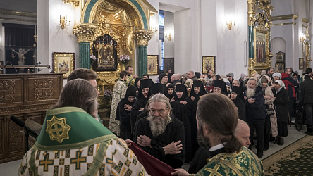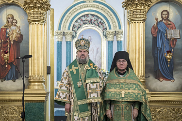 После Божественной литургии был совершен чин о Панагии и трапеза, затем в конференц-зале обители прошла конференция монашествующих Тверской епархии в рамках XII Фаддеевских образовательных чтений.