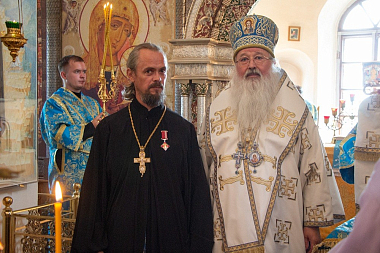 По окончании проповеди управляющий Орловской митрополией вручил награду клирику Троицкого Оптина монастыря протоиерею Алексию Комову. За труды во славу Церкви отец Алексий награжден медалью преподобного священномученика Кукши II степени.