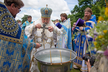 В завершение митрополит Тихон отслужил молебен с водосвятием на месте явления Тихвинского чудотворного образа рядом с монастырем.