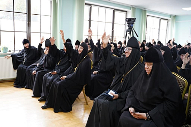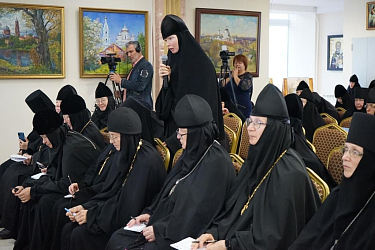 В приветственном слове архиепископ Максимилиан, который зачитала игумения Параскева (Ляхова), настоятельница женского монастыря в честь Калужской иконы Божией Матери, ответственный секретарь направления XIV «Монаcтыри и монашество», участникам круглого стола напоминалось о добродетели смирения, и пожелал рассмотреть «вопросы духовной и внешней жизни монастырей, которые помогли бы избежать различных искушений и помогли на пути исполнения евангельских заповедей, ведущих к Богу и вечной блаженной жизни».