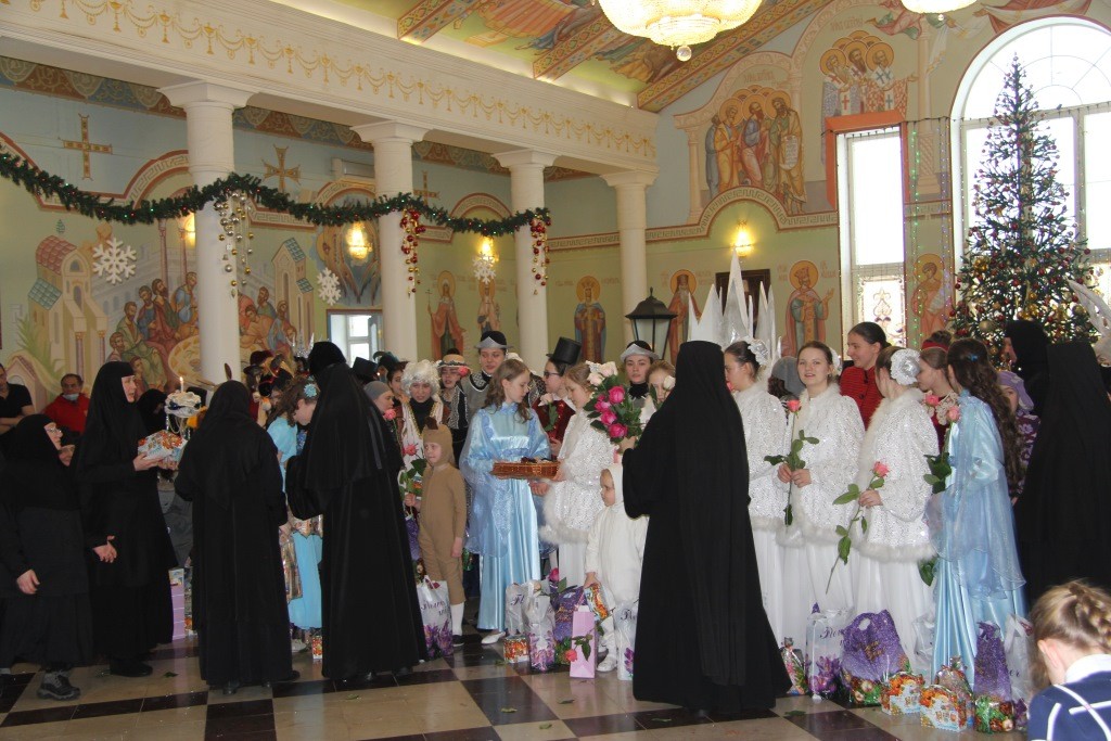 По завершении сказочного представления главных героев праздника – воспитанниц детского православного пансиона «Отрада» ждали поздравления, добрые слова пожеланий и благодарности за замечательный праздник и представление. И еще много подарков воспитанницам «Отрады», прихожанам, сестрам и всем-всем гостям праздника от игумении Николаи с сестерами, скитов и подворий обители, от настоятельниц женских обителей, посетивших праздник, от учителей Православной гимназии и других гостей.