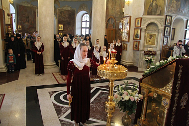 Традиционно в этот день сами воспитанницы становятся служительницами Божией Матери в храме, на кухне, в трапезной, и, конечно, на сцене – чтобы порадовать всех своими талантами.Девочки церковничают во время праздничного всенощного бдения и Божественной литургии, прислуживают в алтаре, читают Апостол и канон, поют на клиросе, составляют меню праздничного стола, готовят многие блюда, помогают накрывать и украшать столы к праздничной трапезе, а также готовят праздничную сказку-представление со множеством сюрпризов.