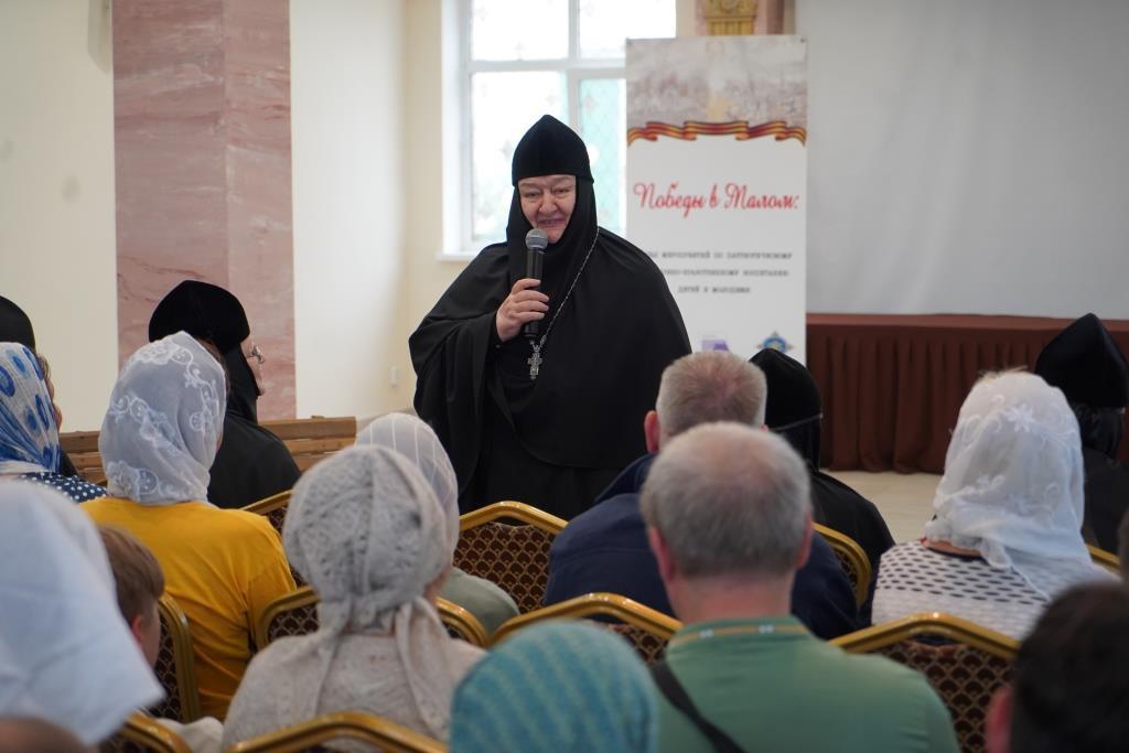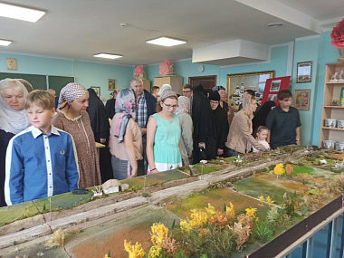 Первыми посетителями выставки и зрителями литературно-музыкальной композиции стали участники Свято-Тихоновских Калужских чтений, а также прихожане Черноостровского монастыря и паломническая группа из Калининграда, для которой в обители проходит недельная духовно-просветительская программа.