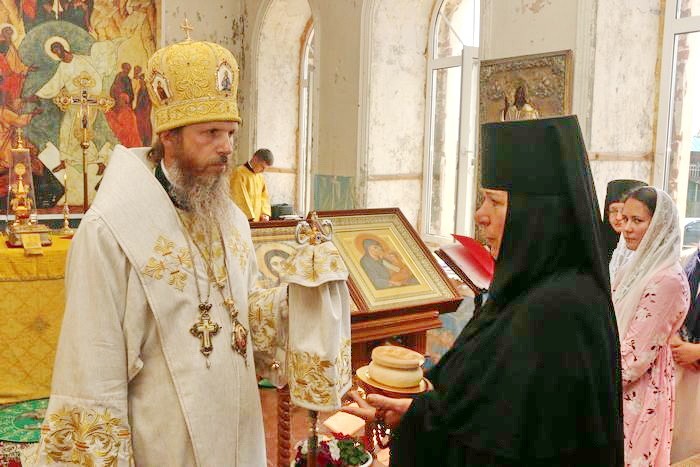 По окончании Литургии игумения Руфина поблагодарила правящего архиерея за архипастырский визит и преподнесла ему заздравную просфору.