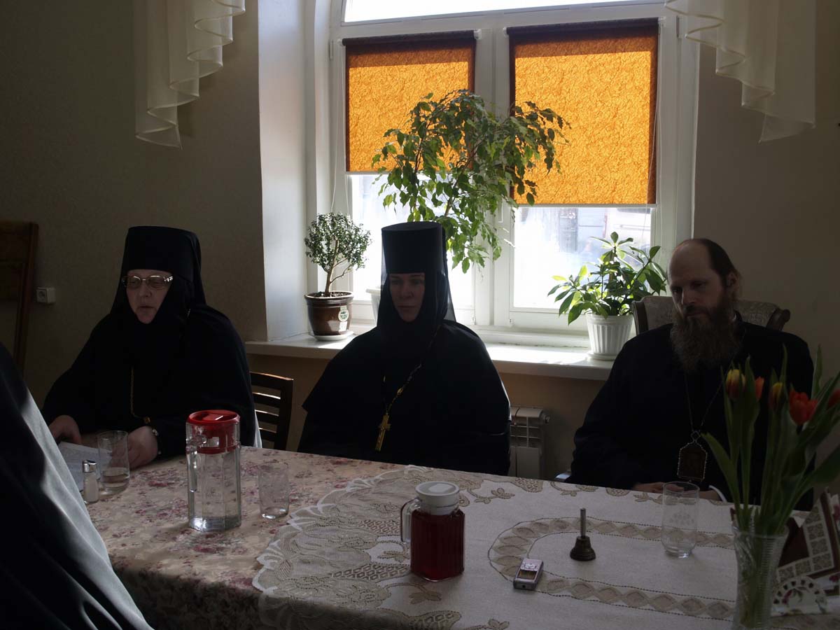 На мероприятие собралось более 20 монашествующих: настоятельница Выксунской Иверской обители игумения Антония (Миронова), настоятельница Дальне-Давыдовской обители игумения Руфина (Тарасенко), старшая сестра Островоезерской обители монахиня Серафима (Беляева), а также сестры монастырей.