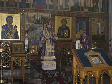 Перед началом съезда правящий архиерей совершил в храме обители Литургию Преждеосвященных Даров.
