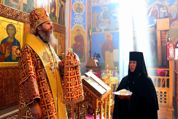По окончании Литургии настоятельница обители поблагодарила владыку Варнаву за архипастырский визит в памятный для обители день и преподнесла гостю заздравную просфору.