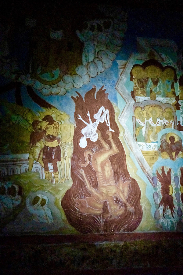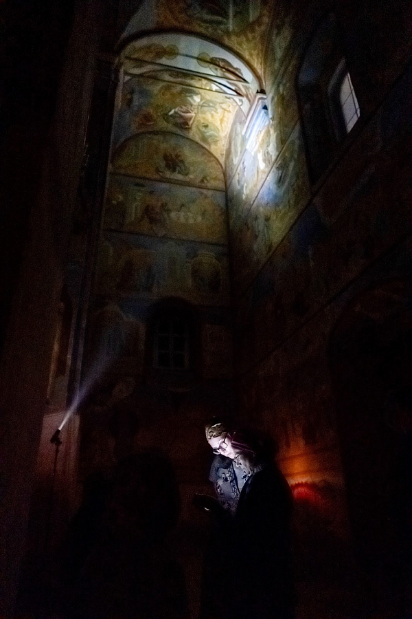 Стены Троицкого собора обители, где происходило чтение, украшены фресками XVII века, иллюстрирующими сюжеты Апокалипсиса, поэтому гости монастыря, собравшиеся специально ради этого события, могли одновременно слушать текст Писания и рассматривать впечатляющие образы, написанные рукой Гурия Никитина и его артели иконописцев.