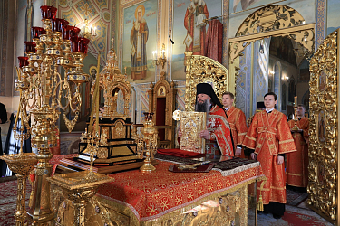 В Его Высокопреосвященству сослужили настоятель монастыря игумен Сергий (Куксов), настоятель Пешношского монастыря игумен Алексей (Горлычев), настоятель Борисоглебского монастыря игумен Августин (Шорников), клирики Подольской епархии, братия обители в священном сане.