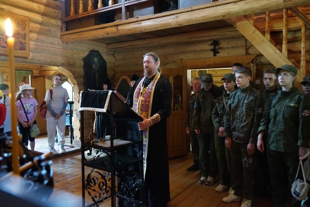 Некоторые из ребят уже не в первый раз приехали на Ильинские рубежи и в музейно-образовательный комплекс в Андреевском скиту. Для тех же, кто приехал впервые с утра, до начала программы в Андреевском скиту, была организована экскурсия по ДОТам и памятникам Ильинских рубежей – от села Кудиново до первой линии обороны на реке Выпрейке. Экскурсию проводил участник Союза военно-исторических клубов «БатальонЪ» историк-реконструктор Алексей Лабзин, одевшийся в форму образца 1941 года и приготовившего для ребят историческую викторину о защитниках Ильинских рубежей и обороне Москвы. Часть участников военно-патриотического клуба по решению Малоярославецкого казачьего хуторского общество «Хутор Малоярославецкий» принимали участие в военно-патриотическом фестивале «Дорога памяти», который в эти дни проходит на Ивановом лугу в Малоярославце – историческом поле Малоярославецкого сражения в Отечественной войне 1812 года. Фестиваль этого года посвящен героической защите Брестской крепости и малоярославчанину – пограничнику Василию Петрову, оказавшемуся среди защитников этого бастиона.