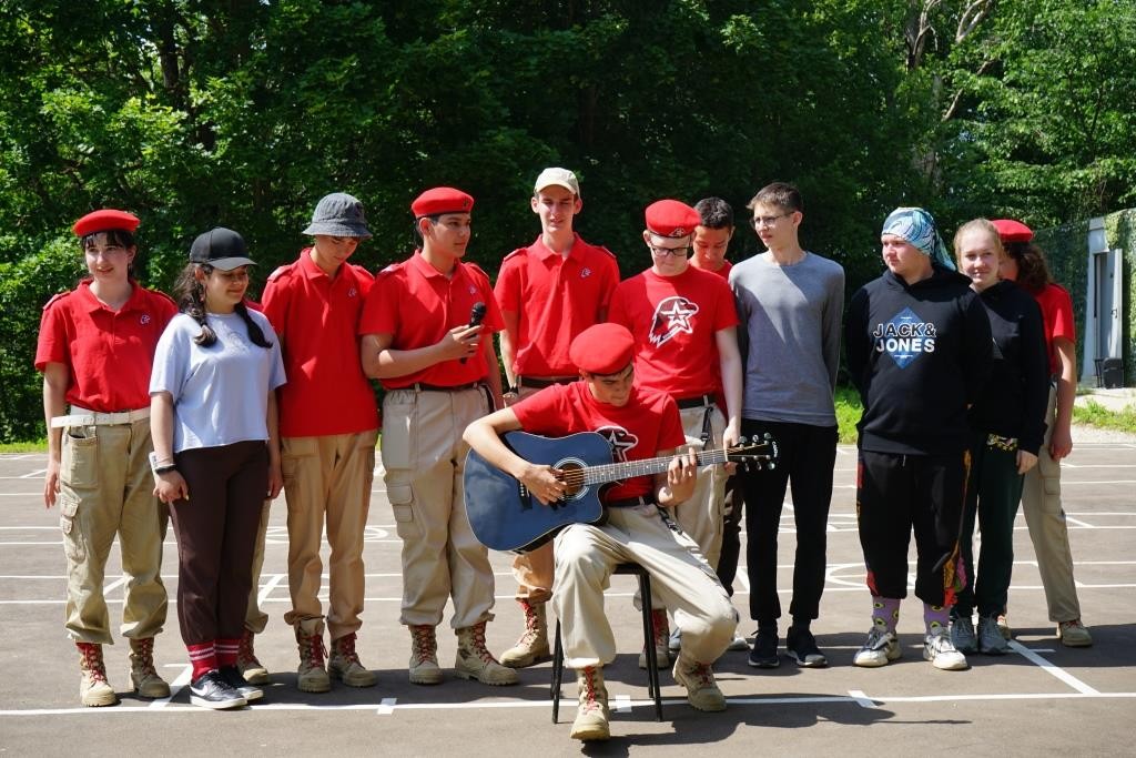 Затем к трем командам присоединились ребята из подольской команды «Горящие сердца», которые шли пешком до Андреевского скита от линии ДОТов на реке Выпрейке. Ребята прямо «с марша» включились в начавшийся творческий смотр – военные и патриотические песни, народные танцы, традиционная казачья фланкировка, стихотворения о Великой Отечественной войне.