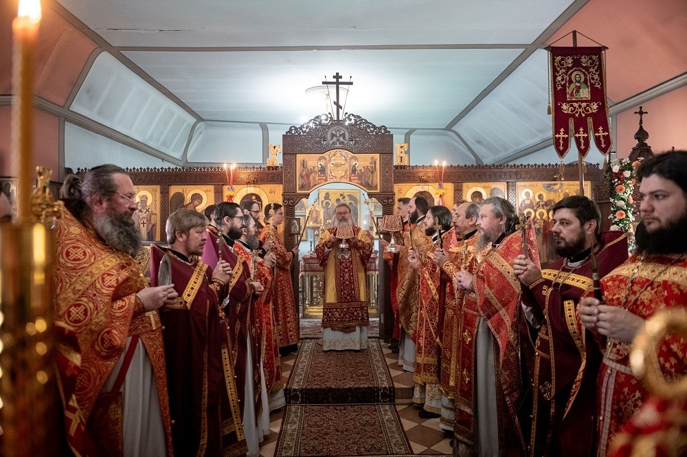 На мирной и сугубой ектениях были вознесены молитвы о Российском воинстве и о мире. За богослужением также молились о страждущей Украинской Православной Церкви. По запричастном стихе проповедь произнёс иеромонах Амвросий (Дегтярёв).