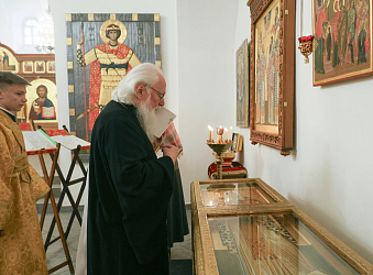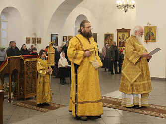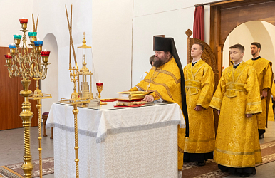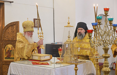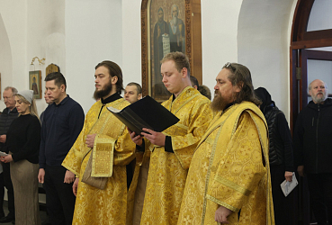 Его Высокопреосвященству сослужили: иеросхимонах Никон (Шахтахтинский), иеромонах Серафим (Игнатьев), иеромонах Алексей (Ковальчук) и иерей Николай Полозов.