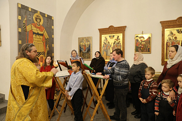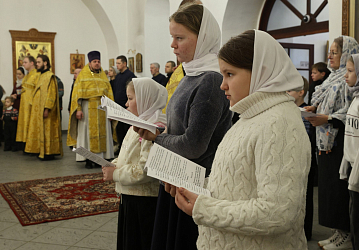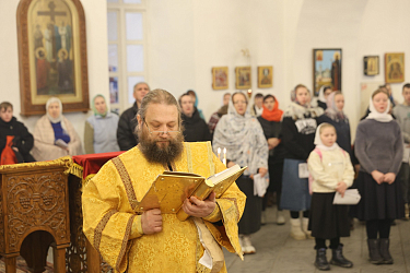 Богослужение сопровождалось пением хора монастыря, хора Новгородского духовного училища и всех молящихся в храме под управлением регента диакона Андрея Каурова.