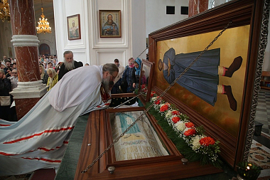 – И поэтому стремление быть у праведного Симеона Верхотурского сегодня – это стремление обрести Дух Божий, который должен почивать в нашей жизни и в наших делах, и которого нам так не хватает, когда мы ведем себя неправильно, но к которому стремится наша душа. …Все наше устремление – к тому, чтобы мы жили в стяжании святого духа Божиего. Тогда мы будем обретать и радость в этом мире, и спокойствие души, и ровность и твердость. И не будем реагировать так болезненно на все то, что вокруг происходит, потому что наша душа будет находиться в руке Божией. А когда в руке Божией наша душа, чтó может повлиять на нас с вами?...Будем это помнить, будем всегда призывать на помощь праведного Симеона Верхотурского, – подчеркнул Его Высокопреосвященство.