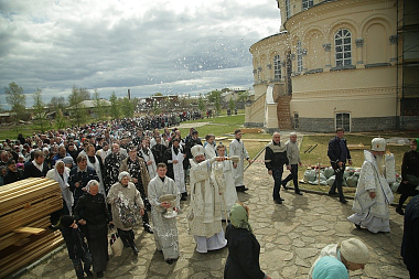 По окончании богослужения состоялся крестный ход вокруг собора. Митрополит Кирилл обратился к присутствующим с архипастырским словом, отметив, что, несмотря на непрекращающиеся работы по обновлению обители, молитвами праведного Симеона здесь всегда ощущаются благодать Божия и радость.