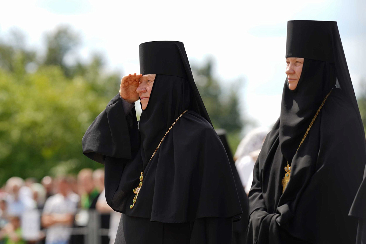 От лица насельниц и паломников Серафимо-Дивеевского монастыря Святейшего Владыку также приветствовала игумения Сергия (Конкова). Настоятельница обители преподнесла Его Святейшеству икону Благовещения Пресвятой Богородицы, просфору и монашеские четки.