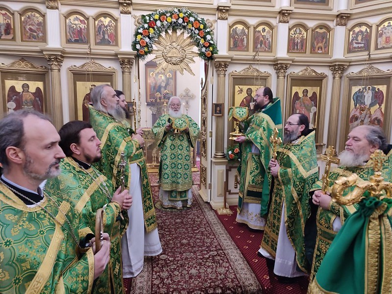 Его Высокопреосвященству сослужили насельник Антониево-Леохновской пустыни архимандрит Митрофан (Письменский); насельники монастыря: игумен Арсений (Гавура), и.о. наместника Иверского монастыря иеромонах Антоний (Битьмаев), настоятель Тихвинского храма города Холм протоиерей Василий Середа, настоятель церкви преподобного Серафима Саровского посёлка Парфино иерей Вячеслав Подмолода.