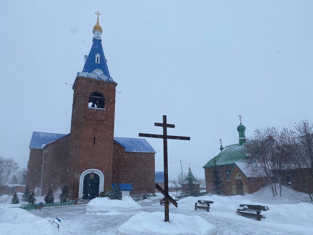 За богослужением владыка Николай вознес молитву об избавлении от вредоносного поветрия, о мире на Украине и Казахстане, молитву о врачах.