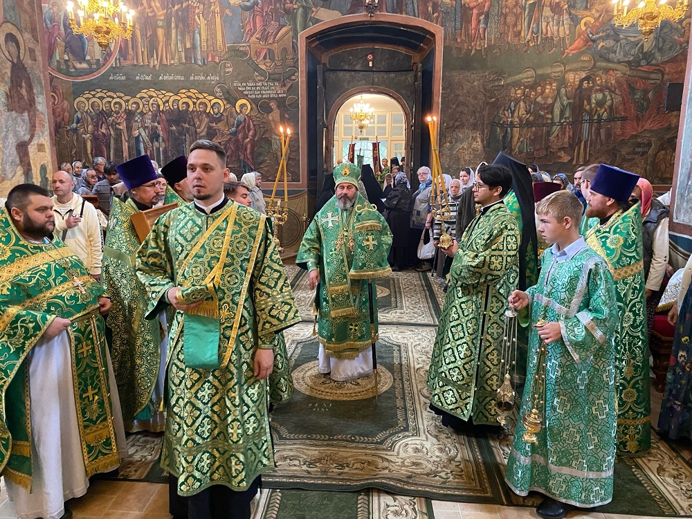 После Литургии вокруг Троицкого собора был совершен крестный ход. После крестного хода перед мощами преподобного Корнилия Александровского архипастырь прочитал молитву.