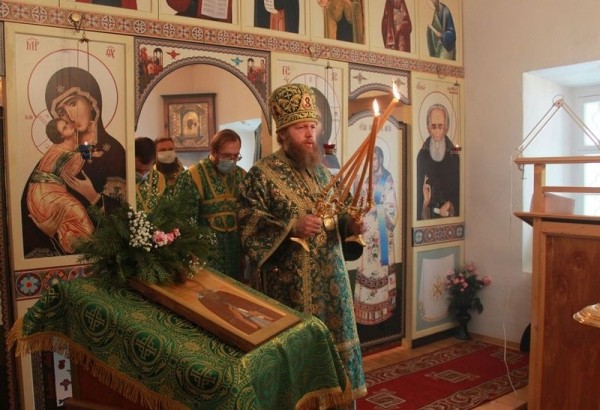У раки, поставленной над мощами преподобного Мартиниана, владыка совершил молебен преподобному.