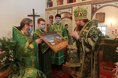 Его Высокопреосвященству сослужили благочинный монастырей Вологодской епархии иеромонах Иоасаф (Вишняков) и настоятель Архиерейского подворья «Богородице-Рождественский Сямский мужской монастырь» иеромонах Иларион (Бережных).