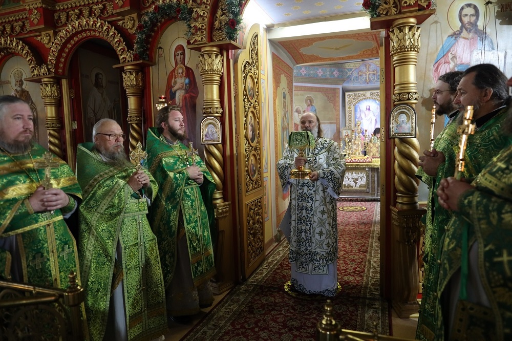 По окончании Божественной литургии духовенство совершило славление праздника, после чего Преосвященнейший владыка обратился к верующим со словом проповеди.