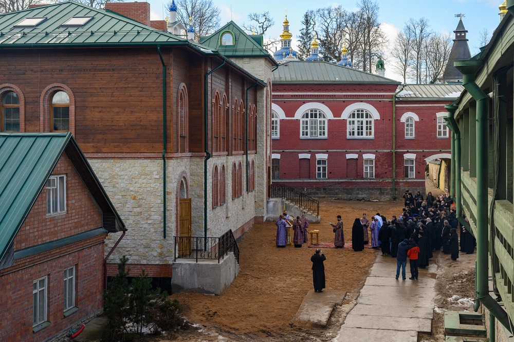 В Успенском храме у святых мощей преподобномученика Корнилия был совершен молебен великому игумену Псково-Печерской обители. После молебна состоялось освящение нового братского корпуса обители.