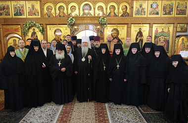 За Литургией молились настоятельница Ризоположенского монастыря игумения Екатерина (Иванова) с сестрами, настоятельница Покровского Суздальского монастыря игумения Екатерина (Кожевникова), а также многочисленные прихожане и паломники обители.