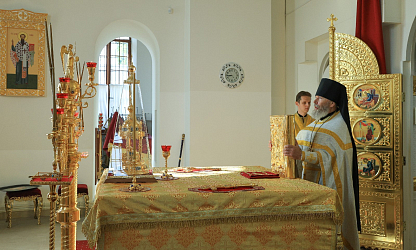 Его Высокопреосвященству сослужили благочинный монастырей Коломенской епархии игумен Варлаам (Горбунов), благочинный Каширского округа иерей Валерий Сосковец, благочинный монастырей Сергиево-Посадской епархии игумен Алексий (Горлычёв), клирики обители и приглашённое духовенство.