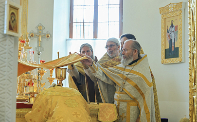 Проповедь по запричастном стихе произнес клирик обители иерей Константин Черня.