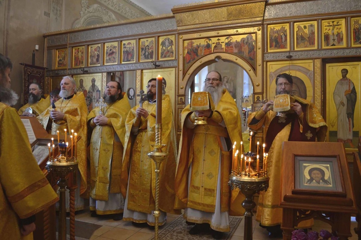 Праздничное богослужение возглавил настоятель монастыря игумен Никодим (Федоров). Отцу Никодиму сослужили руководитель отдела религиозного образования и катехизации Ярославской митрополии и настоятель Сретенского храма Ярославля протоиерей Павел Рахлин, клирик монастыря игумен Герман (Кондратьев), настоятель Николо-Тропинского храма Ярославля иерей Максим Ветров, клирик монастыря иерей Димитрий Тепляков, клирик монастыря иерей Виктор Воробьев, клирик монастыря диакон Павел Андреев.