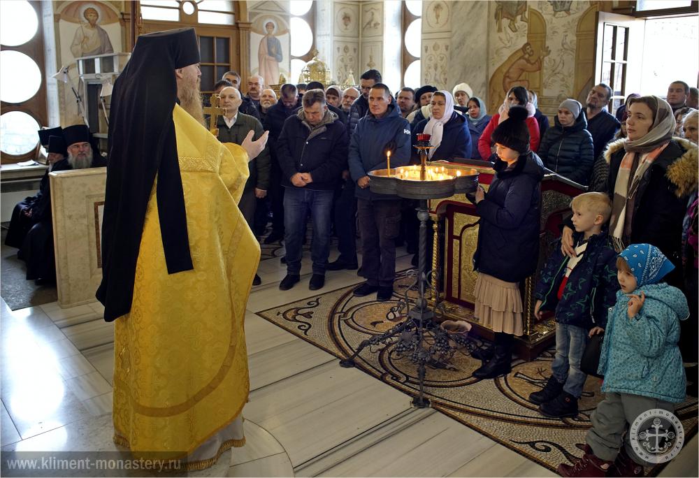 Праздничные богослужения в Пантелеимоновском храме обители возглавил благочинный монастыря иеромонах Авель (Василенко).