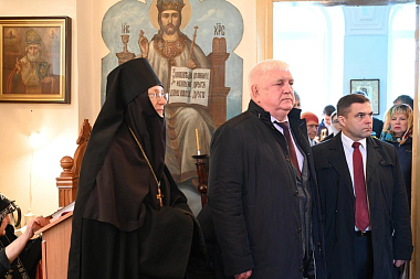 Митрополит Александр поблагодарил благодетелей, помогающих возрождать величественный Никольский храм святой обители, и поздравил всех собравшихся со знаменательным событием: